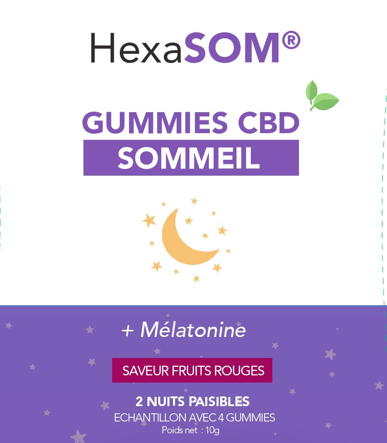Accueil > CBD pas cher > Echantillon de Gummies Sommeil HexaSOM