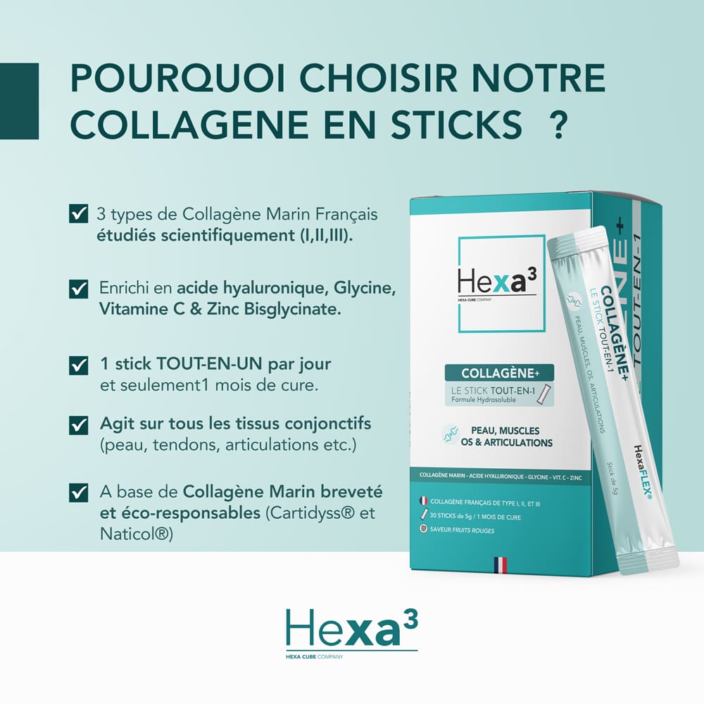 Il n’y a aucune contre indication à prendre notre collagène en poudre Hexa3 avec d’autres compléments. Il peut être combiné par exemple avec nos produits CBD, de la vitamine D, des oméga-3 ou de la glucosamine pour renforcer le soutien osseux et articulaire.