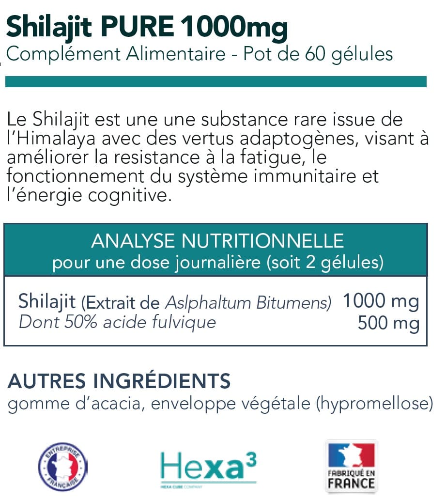 Shilajit 50% Acide Fulvique 60 gélules HexaPURE® Hexa3