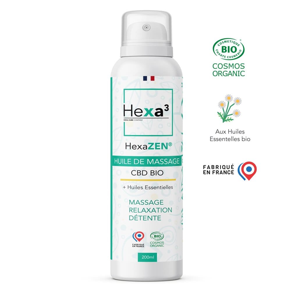 Notre Huile de Massage CBD est un produit unique, avec du CBD et 6 huiles essentielles issues de l’Agriculture Biologique (Gaulthérie, Menthe Poivrée, Genévrier, Sésame, notamment).