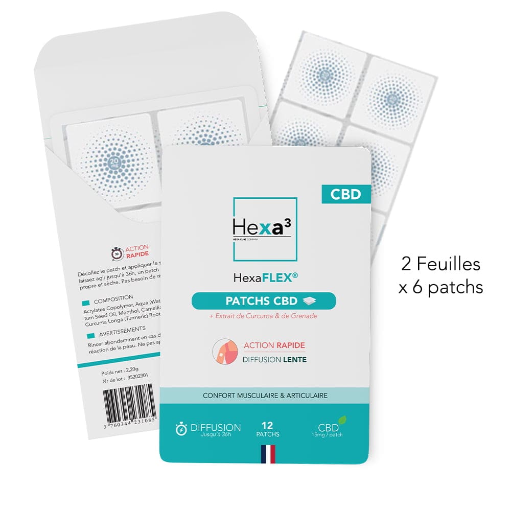 Ciblez les zones douloureuses avec les patchs CBD HexaFLEX® dosés à 16mg de CBD/patch. La technologie transdermale (action cutanée) vous permettra de cibler plus facilement les zones souhaitées.. Les patchs sont conditionnés en feuille de 6 patchs, chaque enveloppe contient 12 patchs, soit 192mg de CBD au total (2 feuilles de 6 patchs).