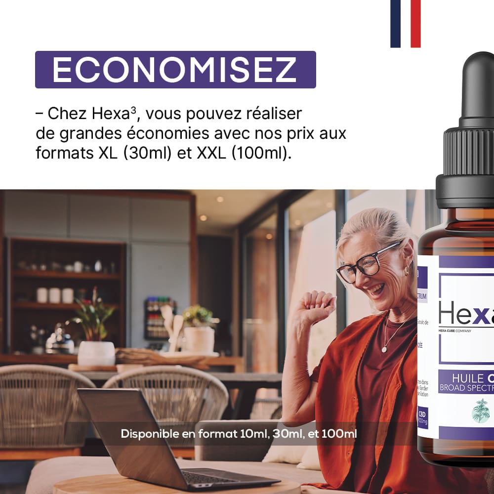 La gamme d’huile de CBD Hexa3 est très large. Nous commercialisons des huiles de CBD avec de l’huile chanvre ou de l’huile MCT avec ou sans arôme naturel de citron, de menthe ou de vanille. Les huiles sont disponibles selon les modèles en format 10ml et/ou 30ml. Pour vous aider à choisir, nous vous recommandons de lire notre article sur notre blog en cliquant ici.