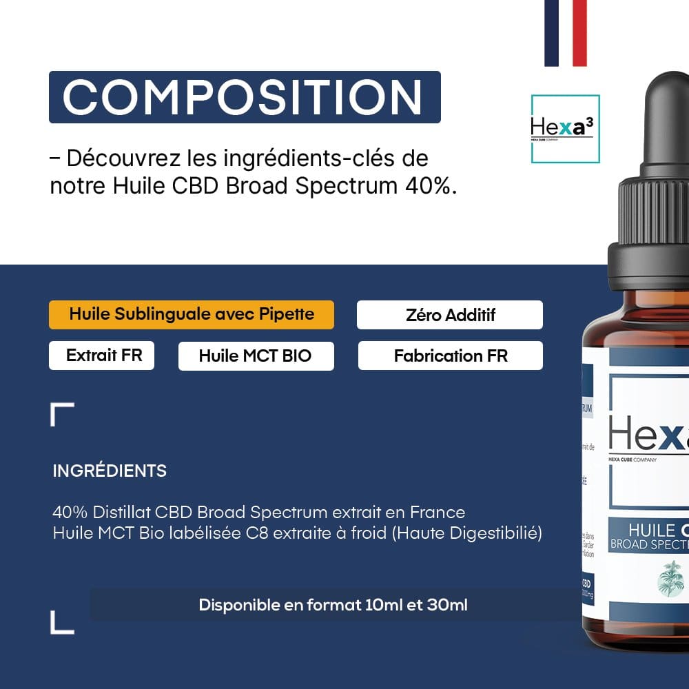 Huile CBD 40% Broad Spectrum 30ml Format XL Hexa3
